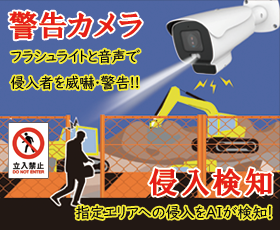 あらかじめ指定しておいたエリア内への人および車両の侵入を正確に検知し、音声やフラッシュライトで警告します。